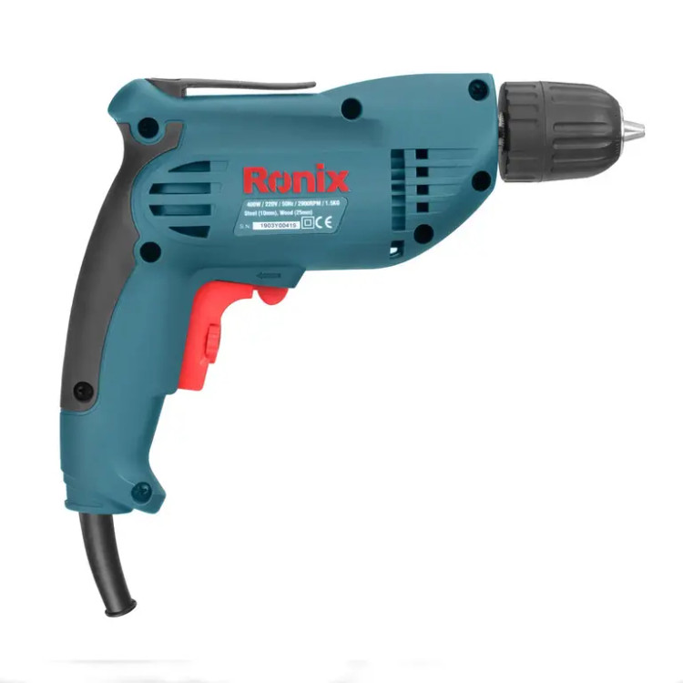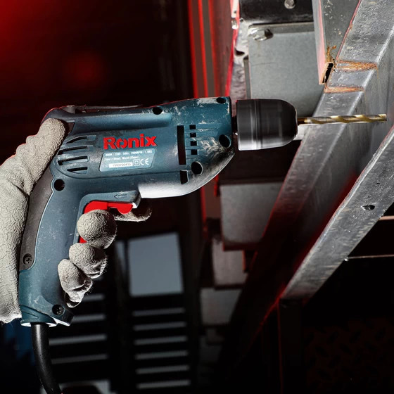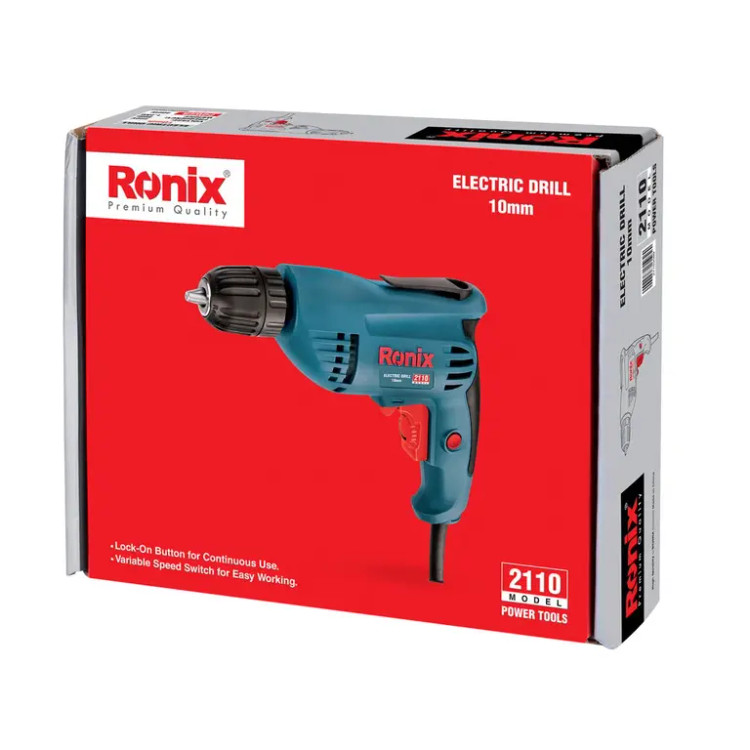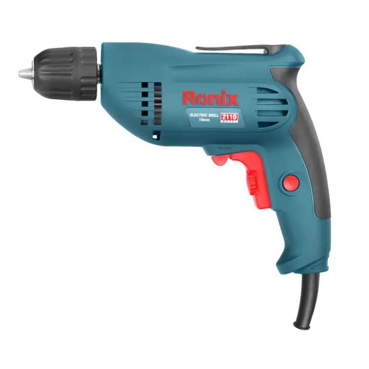 دریل برقی 2110 رونیکس، از موتور قدرتمند 400 وات با سرعت گردش بالغ بر 2900 دور در دقیقه برخوردار است و در کاربردهایی نظیر سوراخکاری و بستن پیچ در سطوح چوبی و فلزی مورد استفاده قرار میگیرد. سه نظام مستحکم و 10 میلیمتری این دریل، دو تکه و اتوماتیک بوده؛ برای تعویض مته نیاز به آچار مخصوص ندارد و همین مزیت، بر روی سرعت کار با این ابزار و بازدهی مورد نظر، تاثیر مثبتی میگذارد. این سه نظام میتواند متههایی مخصوص سوراخکاری چوب و فلزات را در خود نگه دارد.