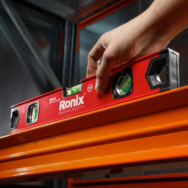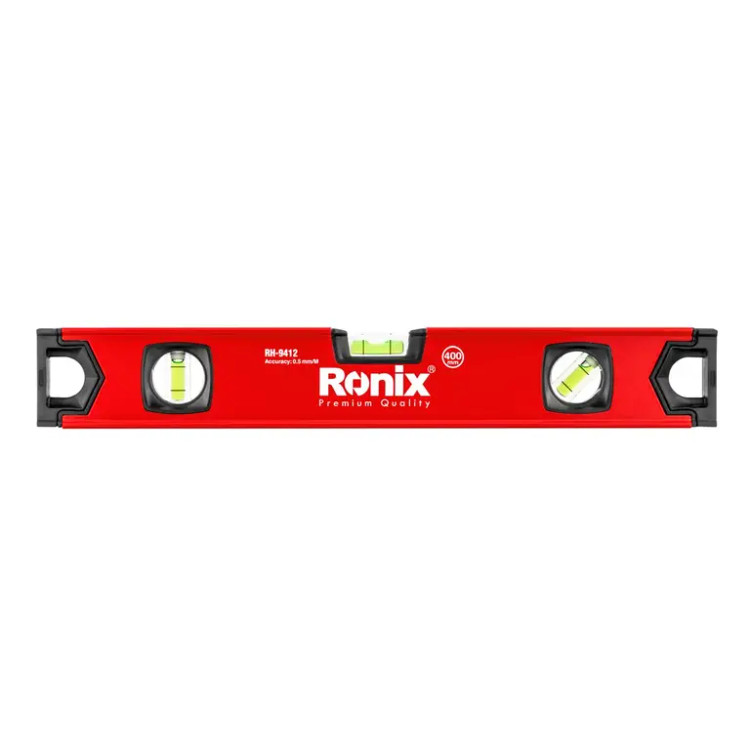 تراز بنایی 40 سانتیمتری رونیکس مدل RH-9412 از بدنهای آلومینیومی، سبک و مستحکم تشکیل شده که با پوششی از پلاستیک پروفیل فشرده پوشانده شده است. همچنین، سطح مقطع این ابزار، در هر دوطرف ماشینکاری شده است که موجب افزایش دقت در حین کار میشود.