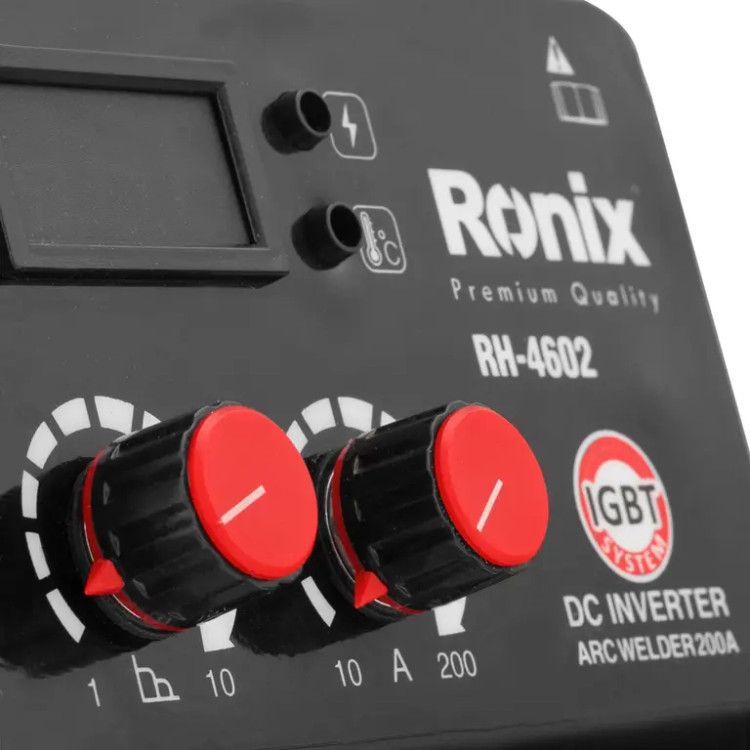 فناوری استفاده از ترانزیستور دو قطبی با گیت عایقشده (IGBT) با قابلیت عملکرد در ولتاژها و جریانهای بالا و نیز سوئیچینگ سریع در اینورتر 4602-RH رونیکس، موجب افزایش کیفیت جوش، نفوذ بیشتر، کاهش مصرف انرژی و در نتیجه، اثربخشی بالاتر دستگاه میشود.