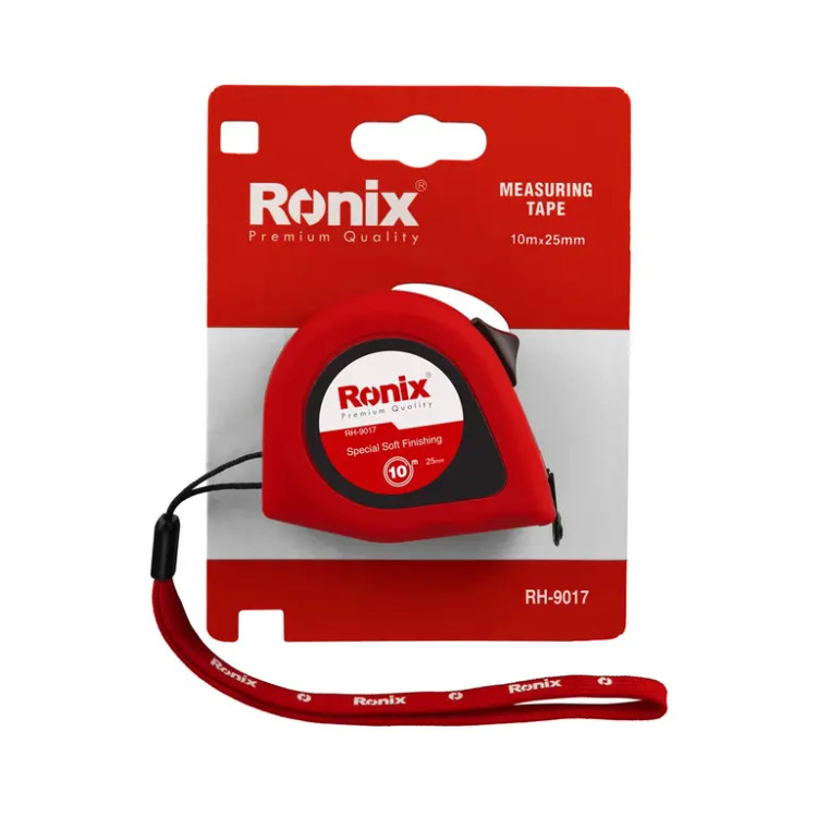 متر 10 متری روکشدار رونیکس مدل RH-9017 دارای پوشش نایلون روی تیغه برای افزایش مقاومت آن در شرایط مختلف است. طول این تیغه معادل 10 متر، عرض آن 25 میلیمتری و ضخامت آن معادل 0.11 میلیمتر است.
