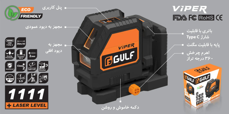 - لیزر به کار رفته در این محصول، لیزر نوع دوم یا همان Class II است. این دسته از لیزرها برای کارهای مختلفی به کار میروند. اما عملکرد آنها به طور خاص در ساخت سقف کاذب و یا پنلهای سهبعدی فوقالعاده است. از همین رو اگر در چنین مشاغلی کار میکنید. بدون شک تراز لیزری دوخط گالف مدل 1111 انتخابی عالی برای شماست.