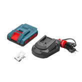 یک عدد باتری 20 ولت با تکنولوژی لیتیوم-یون با ظرفیت 2 آمپرساعت از نوع کامپکت سل (Compact cell) که با حجم کم، قابلیت ذخیره ظرفیت بسیار بالایی دارد و به وسیلهی شارژ سریع، ظرف مدت 20 دقیقه کاملا شارژ میشود.