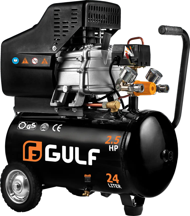 کمپرسور باد 24 لیتری گالف مدل 5424 یک کمپرسور کارآمد و نسبتاً سبکوزن و کماندازه برقی است. که میتوان آن را در شرایط مختلفی به کار گرفت. اما باید دانست که اگر به دنبال یک کمپرسور برای استفاده در کارگاه یا کارخانهجات هستید. این محصول نخواهد توانست انتظارات شما را برآورده سازد. در واقع کمپرسورهایی که با حجم مخزن 10 تا 30 لیتر به تولید میرسند. بیشتر مناسب استفادههای سبک کارگاهی و نیمهصنعتی هستند. همچنین میتوانند در پروژههای خارج از کارگاه برای راهاندازی برخی ابزارهای بادی جهت مونتاژ مناسب باشند.