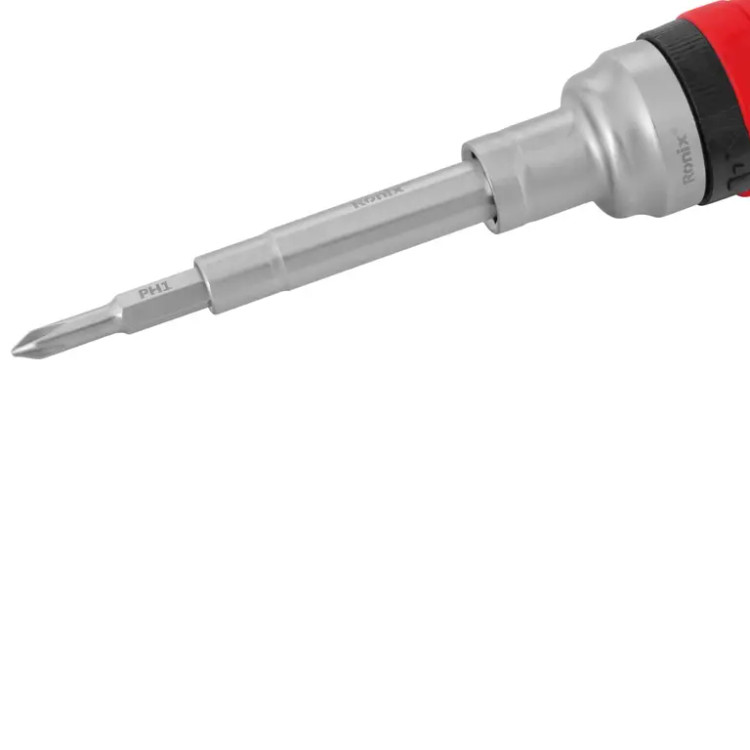 مکانیزم جغجغهای سهحالته در این محصول، حالت راستگرد برای بستن پیچ، حالت چپگرد برای بازکردن پیچ و حالت قفل را ایجاد میکند. در این پیچ گوشتی همهکاره و جغجغهای 19 در 1 رونیکس، انواع سری چهارسو، آلن، ستارهای و ... در درایو دوطرفه 115 میلیمتری آن قابل نصب هستند.