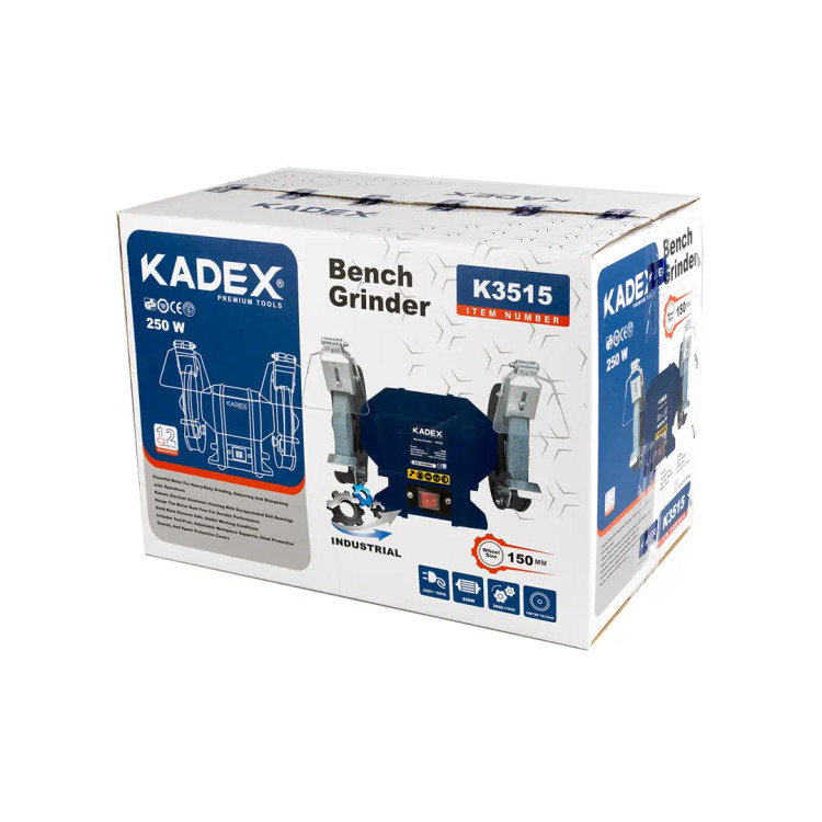 سنگ سنباده رومیزی کادکس مدل K3515 سایز 150 میلی متر توان 250 وات و در حالت آزاد سرعتی معادل 2950 وات ارائه میدهد که قابل نصب روی میز کار میباشد.
