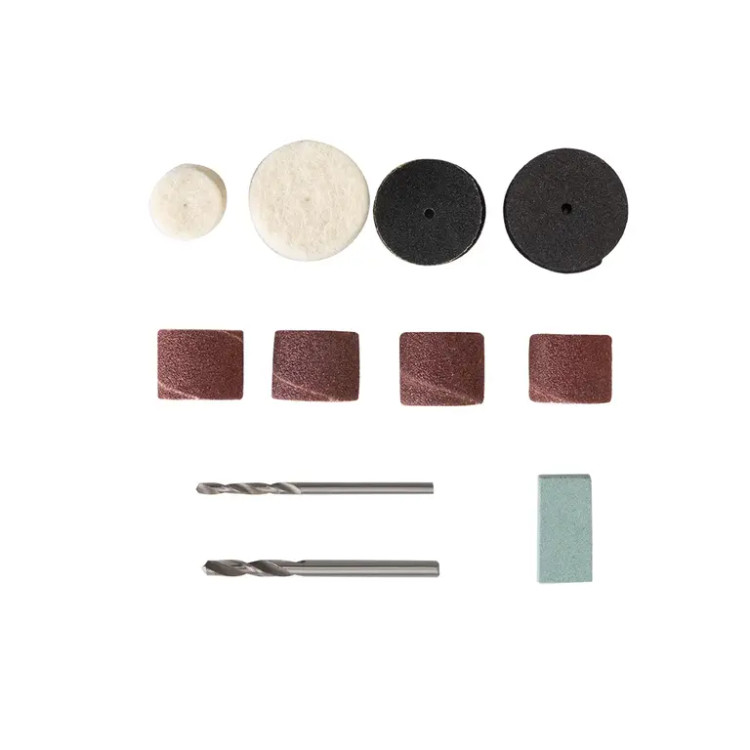 | متعلقات | 40 عدد لوازم جانبی ( یک عدد شفت سنباده : 3.2 میلی متر ، دو عدد سنبه : 3.2 میلی متر ،دو عدد مته : 2.3/3.2 میلی متر ، دو قطعه الماس : 3.2 میلی متر ،یک عدد سنگ سنباده ، آچار ، دو عدد کولت : 2.3/3.2 میلی متر ،چهار عدد سنباده انگشتی ، هشت عدد سنگ برشی.، سه عدد کاغذ سنباده، چهار عدد نمد، ده عددسنگ سنباده با شفت 3.2 میلی متری ) |